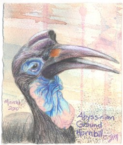 I recently visited the library and checked out the gigantic book Birds of the World by Lee Beletsky. Most of the huge encyclopedic books with full color pictures are secured in the reference section, so I can’t take them home and draw birds from them. Sad. But Birds of the World was amazingly available. It’s full of full color illustrations. While I’m not about to draw a copy of another artist’s drawing, I am getting lots of great ideas for birds to look up on-line.