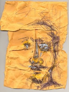 Plus, there’s something you need to know about this guy: he is so infectuously upbeat, so brimming with positive energy that it is impossible for me to say “no” to him without feeling like a complete asshole. I know, this is my problem, not his… But I cave anyways, and feel the first traces of bitterness seep in: I will draw a three minute bird, in exchange for one of his drawings…