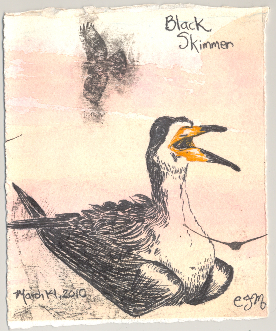 I love drawing birds with distinctive beaks. These guys have a longer lower bill because they skim the surface of the water to eat. They can also dive and fish with the best of them, but the skimming is really where it’s at with these guys. He has ruffled feathers because he’s been sitting on a windy cliff-top.