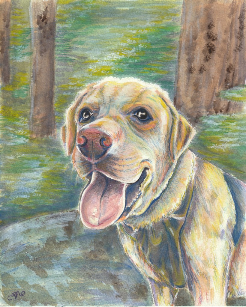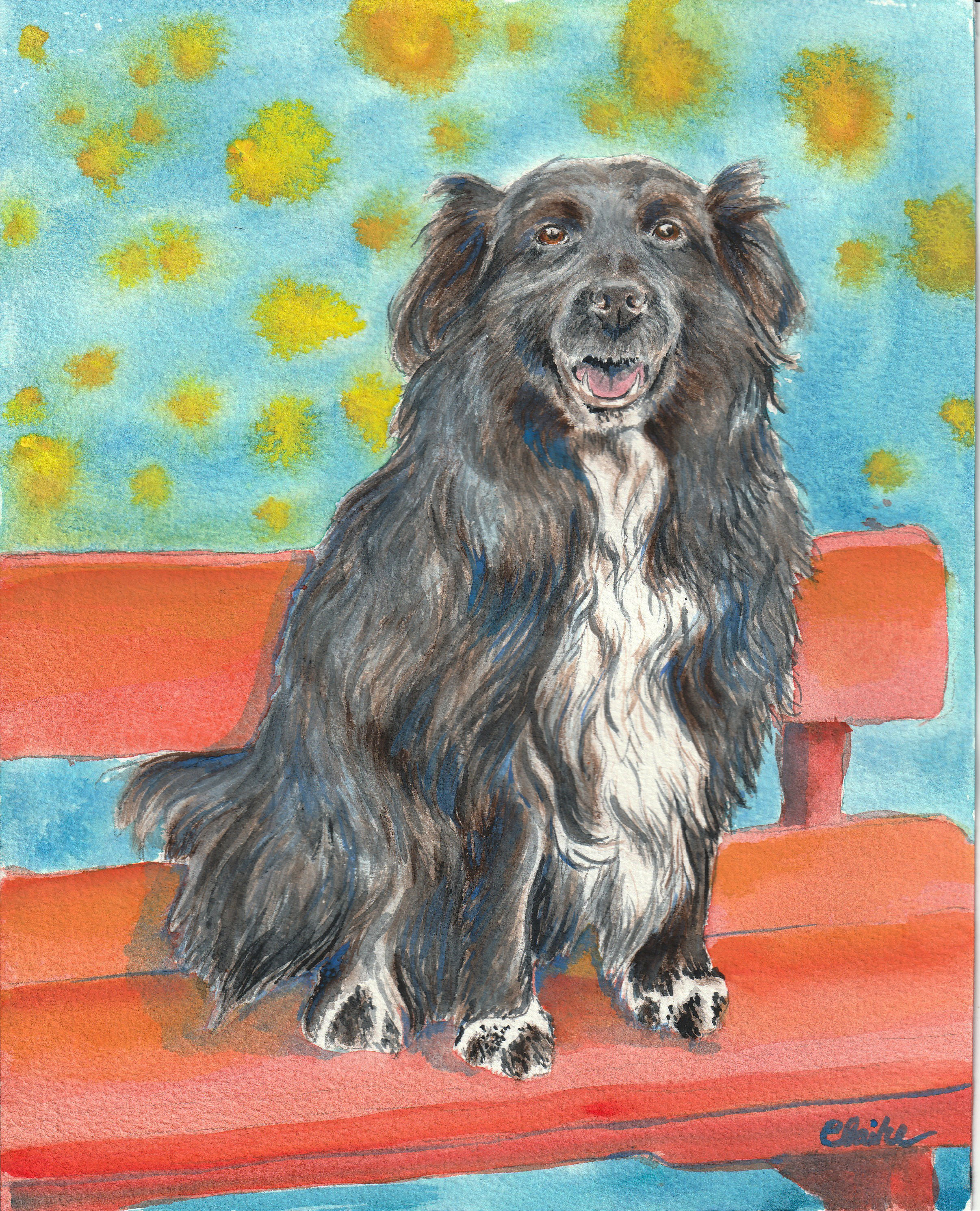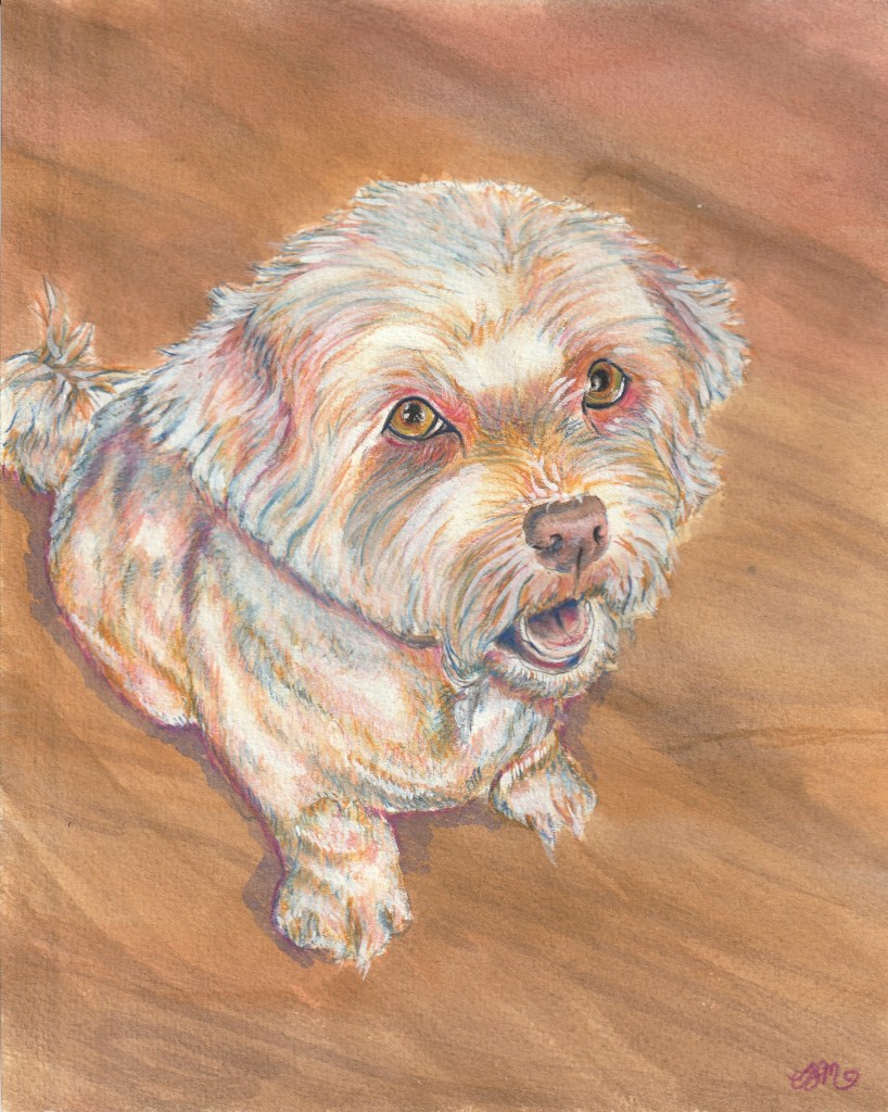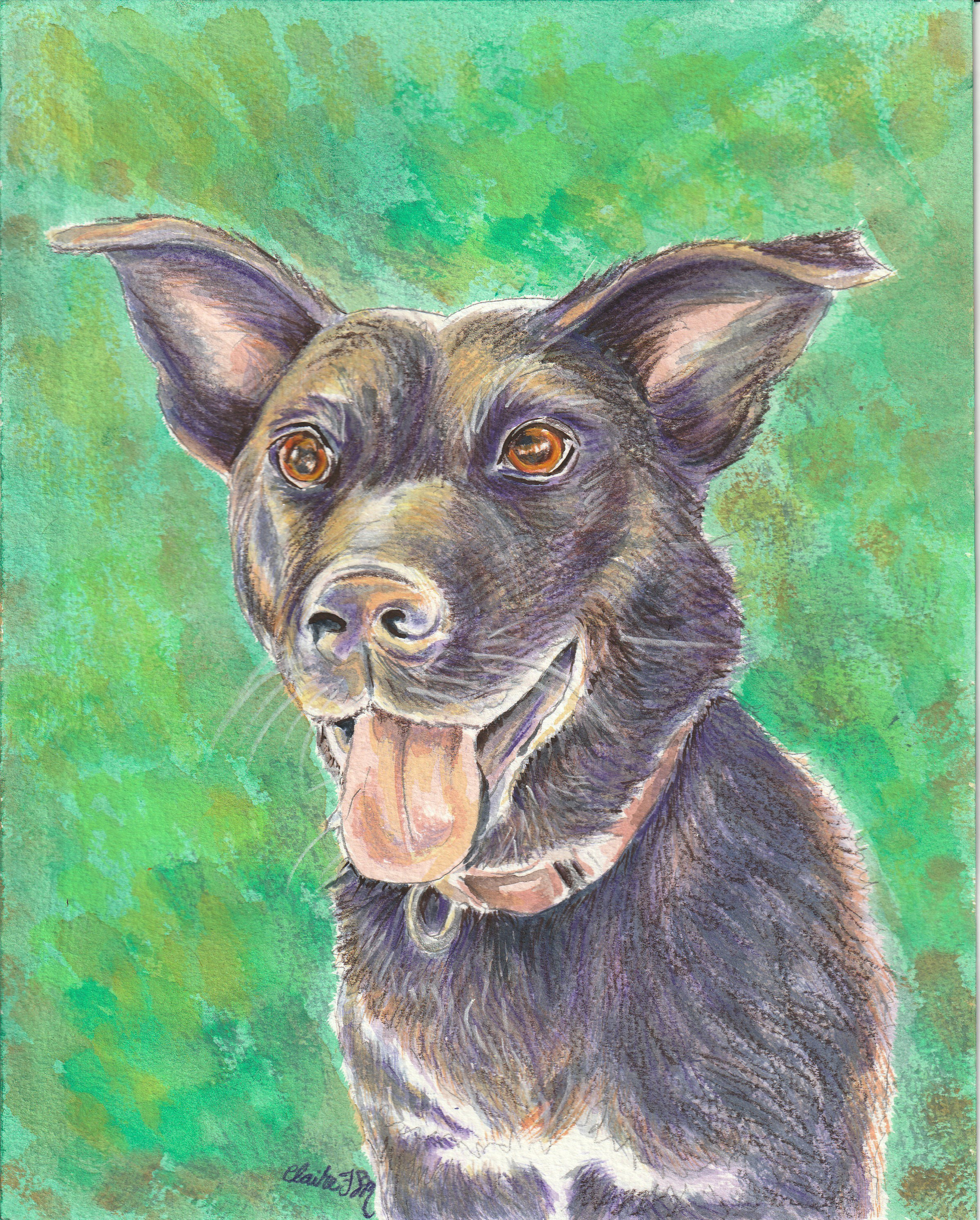 In 2020, I started donating pet portraits for auctions. I find it delightful to capture the charm and personality of these beloved pets. Funny smile, bent ear, fluffy butt? They’re all good dogs (and cats)! Most of these portraits have been donated to fundraisers for schools or non-profits, and a few were created as gifts for friends. Please feel free to contact me for more info. All portraits were made in watercolor and colored pencil.