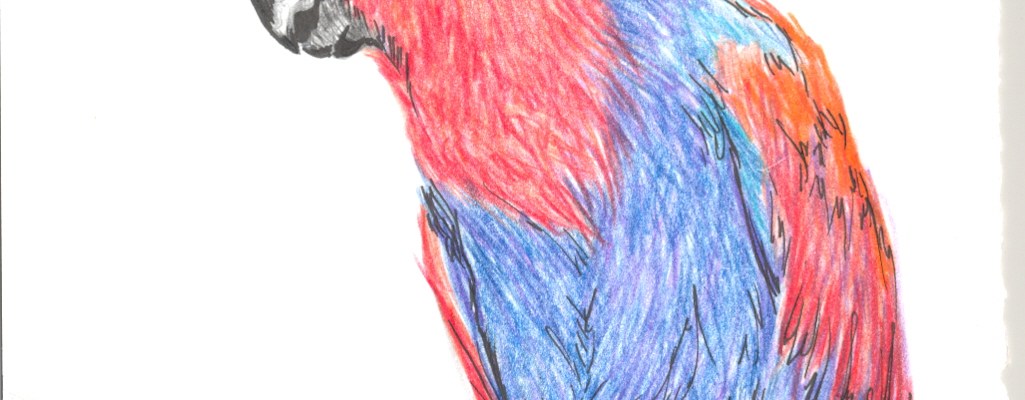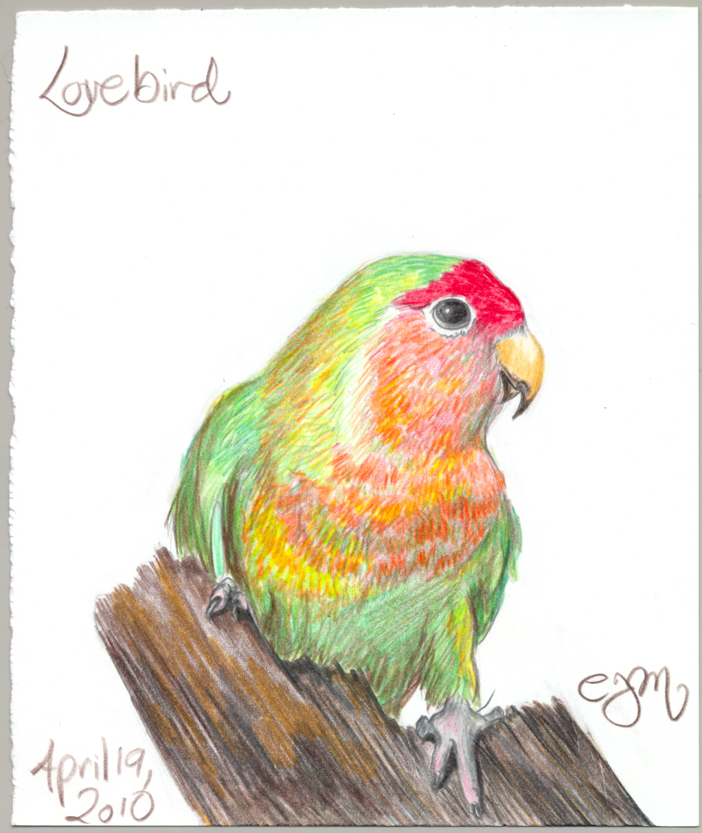 Lovebird March 17, 2013 | clairemeyler After several days of black and white birds, I forced myself to do a more colorful subject. It was a nice break.