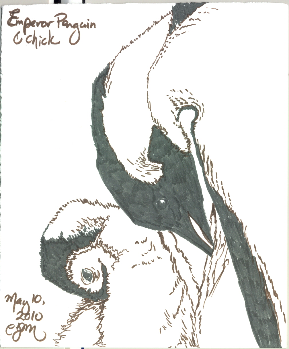 I was shying away from drawing a penguin because they are just too damned cute. It’s impossible not to draw a cute penguin. And I am leery of getting to cutesy.