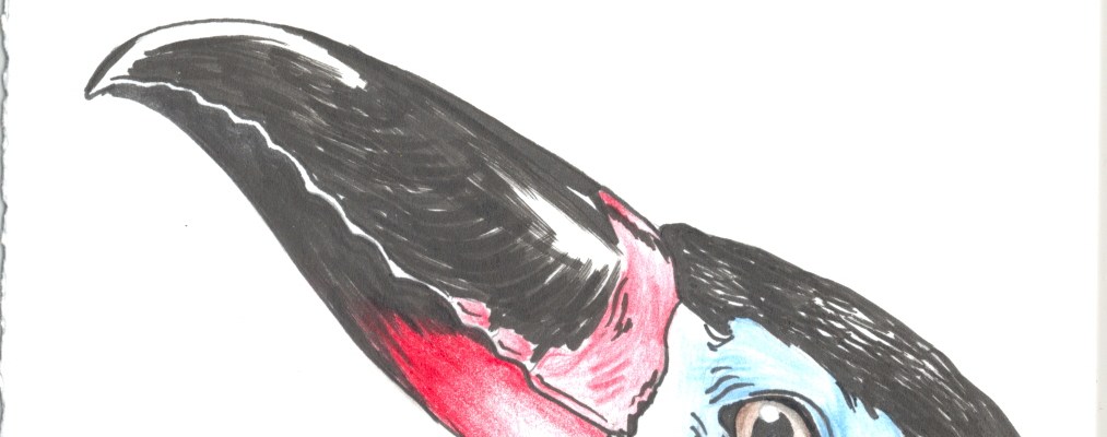 According to the little web research I’ve done, a toucanet is also a toucan, but it’s a type of subspecies that is smaller in size. This guy struck me with his charming smile and bright beak. Plus, I got to break out the brush tip pen on his beak and black head feathers.